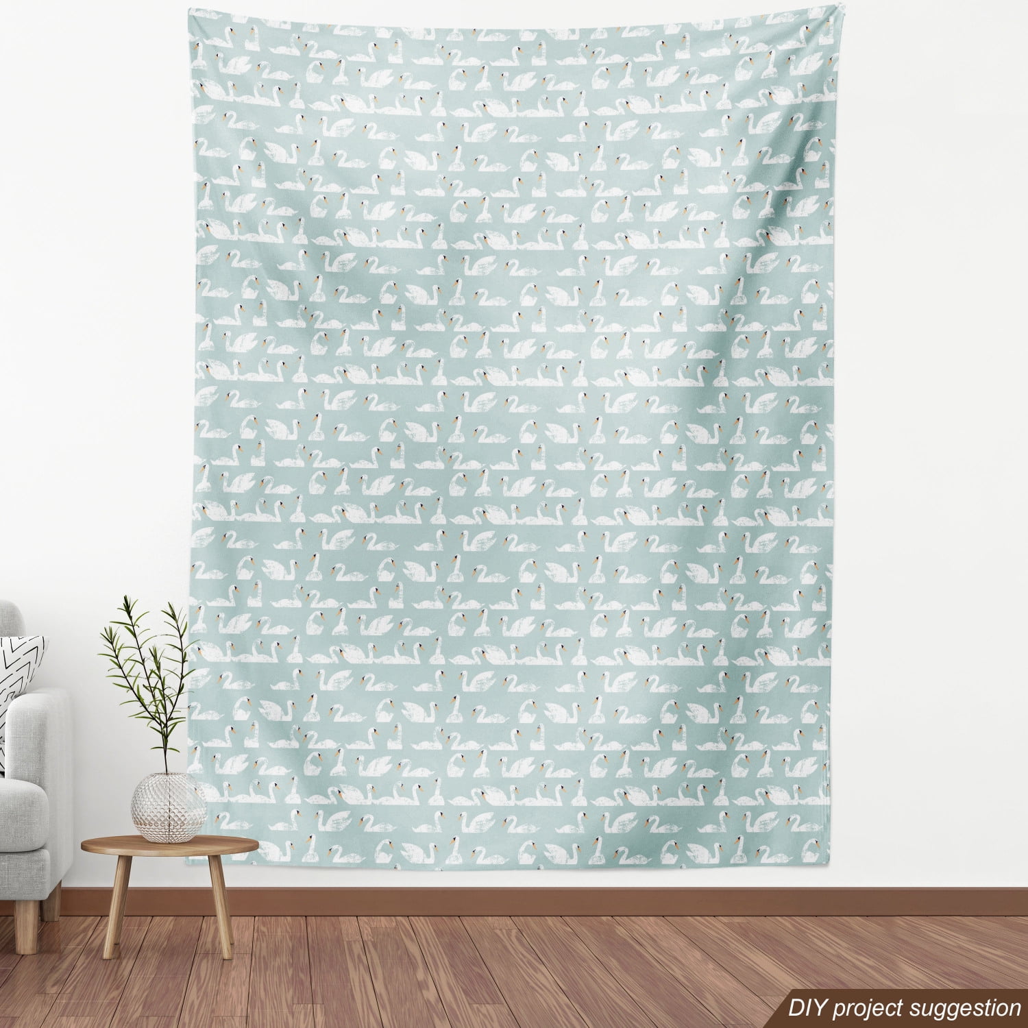 Swans Fabric By The Yard Grunge Style Asymmetric Design Flock Of Swimming Birds Pastel Pattern Decorative Upholstery Fabric For Sofas And Home Accents 5 Yards Pale Seafoam And White By Ambesonne