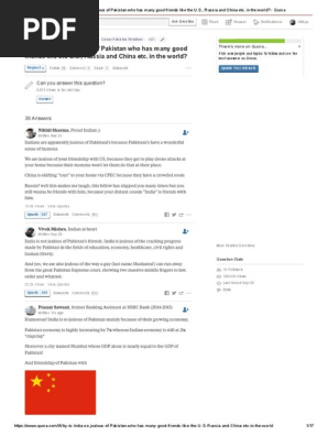 Why Is India So Jealous Of Pakistan Who Has Many Good Friends Like The U S Russia And China Etc Pdf Pakistan The United States