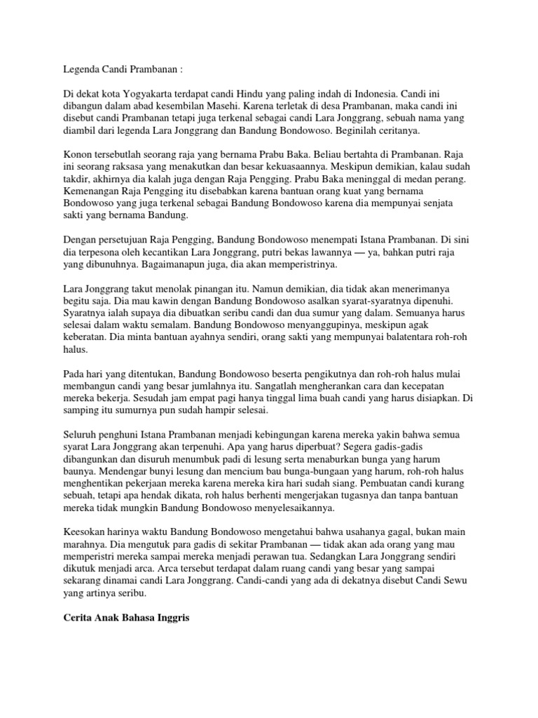 22 Cerita Legenda Candi Prambanan Dalam Bahasa Inggris Dan Artinya Ideas In 2021 Cerita