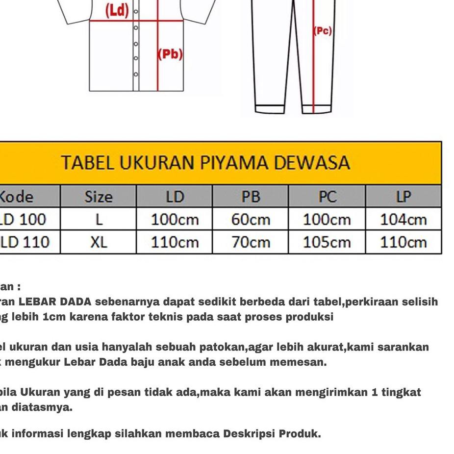 40 Tabel Ukuran Piyama Dewasa Obob Site